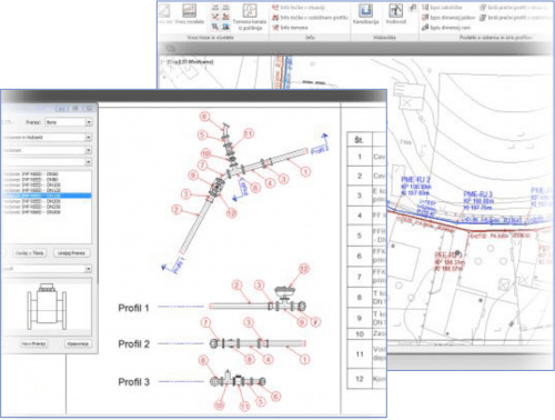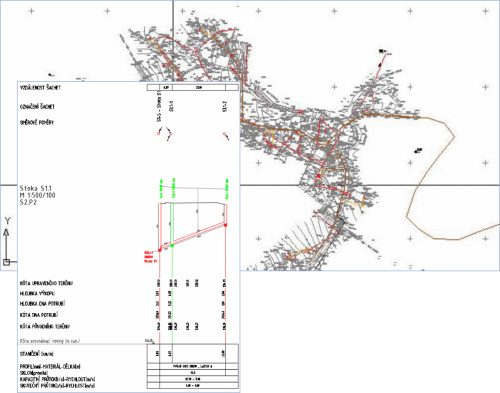 • každá změna v situaci nebo podélném profilu je vždy reflektována na jedno kliknutí myši do všech potrubí a sítí