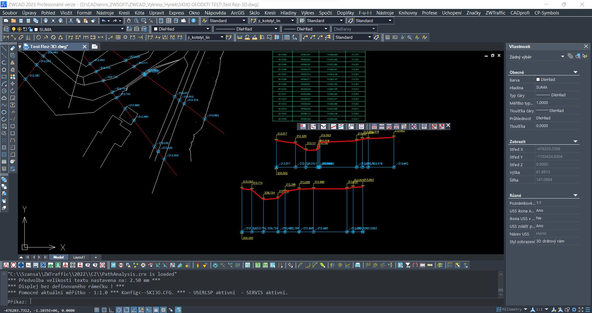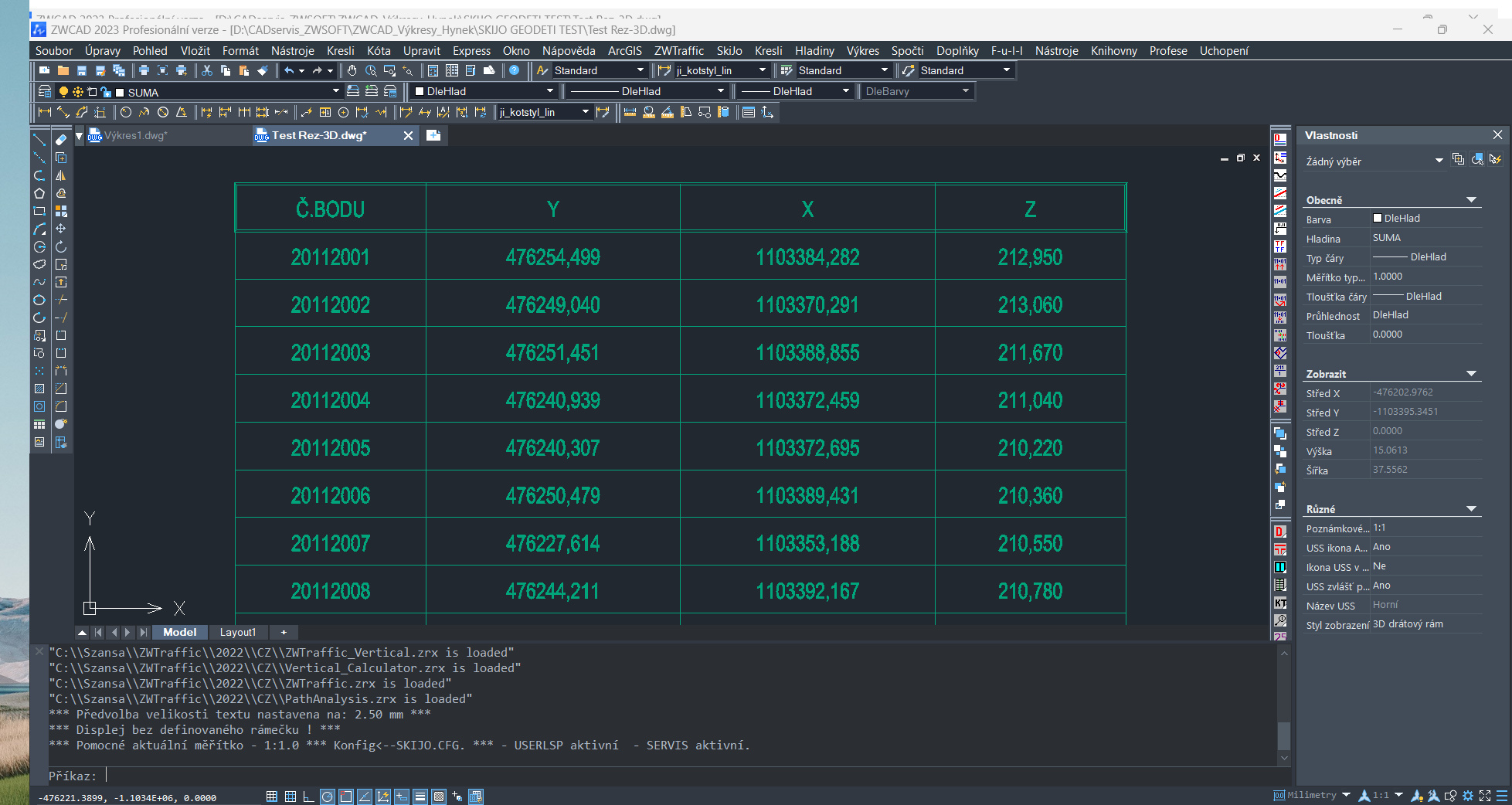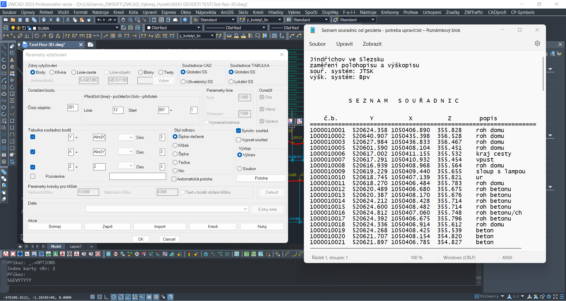 • Načítání a vkládání výškových bodů dle zápisníku geodeta ve formátu .txt